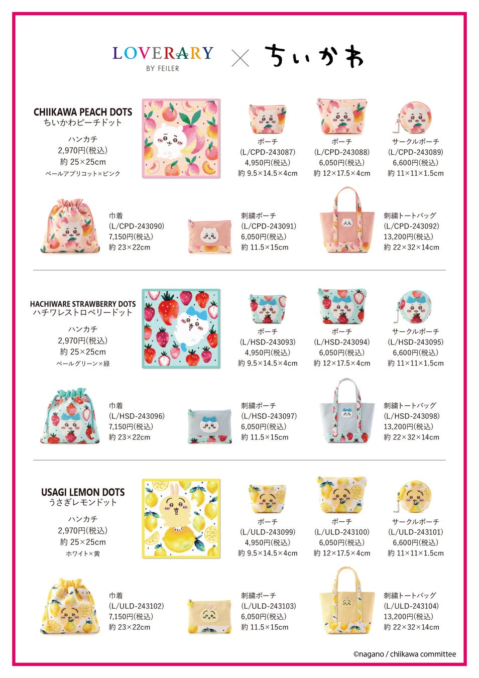 フェイラージャパン株式会社(本社:東京都千代田区、代表取締役社長:八木直久)は、2024年2月27日(火)に、「ちいかわ」とフェイラーのギフトコンセプトショップLOVERARY BY FEILER(ラブラリー バイ フェイラー)のコラボレーション商品を、フェイラー銀座本店、フェイラー天神地下街店、髙島屋大阪店フェイラーショップ、全国15店舗のラブラリーフェイラーショップ( https://www.feiler-jp.com/loverary/ )、フェイラー公式オンラインショップにて発売することを発表いたします。