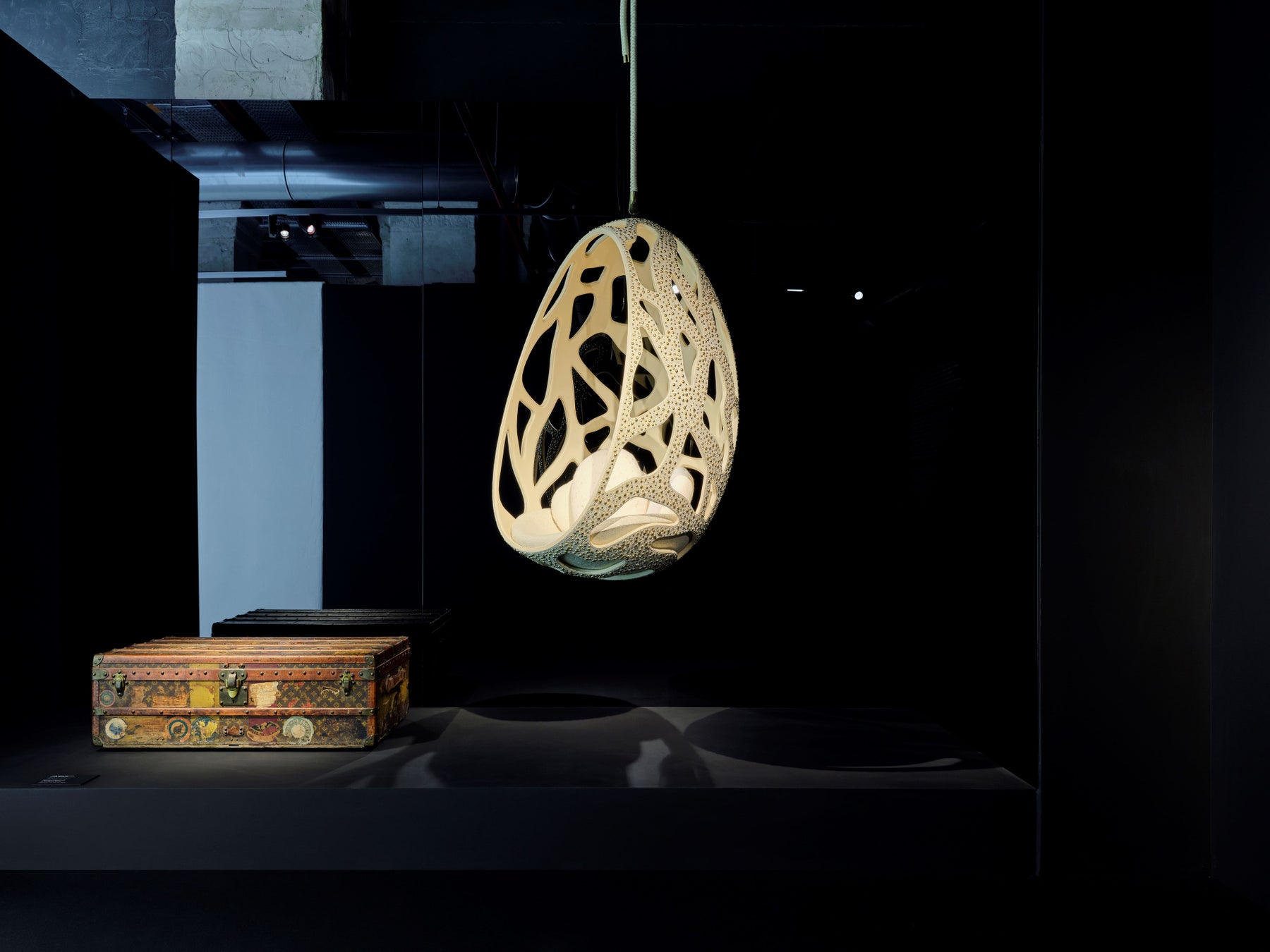 エキシビション会場の1階では、エストゥディオ·カンパーナがデザインした詩的な「オブジェ·ノマド」がスポットライトを浴びました。ウンベルト·カンパーナは、ルイ·ヴィトンとのコラボレーションに関する最初のディスカッションの時、アイコニックなトランクの数々に感銘を受けたことを鮮明に覚えています。「1850年代に製作されたルイ·ヴィトン初期のトランクの1つを目にした瞬間、特に革新性や品質、クリエイティビィティという点で、すぐに自分の作品との共通点を見つけた」と説明するブラジル人デザイナー。「創業者ルイ·ヴィトンは単にトランクをデザインすることを目指したわけではない。彼は、トランクというものを一新し、積み重ねや持ち運びがしやすいように上下が平らな構造を作り出した。私は、彼の大胆なアプローチに深く共感している。ルイ·ヴィトンには、それまでの常識を打ち破り、新しいことに挑戦しようという決意があった」。
