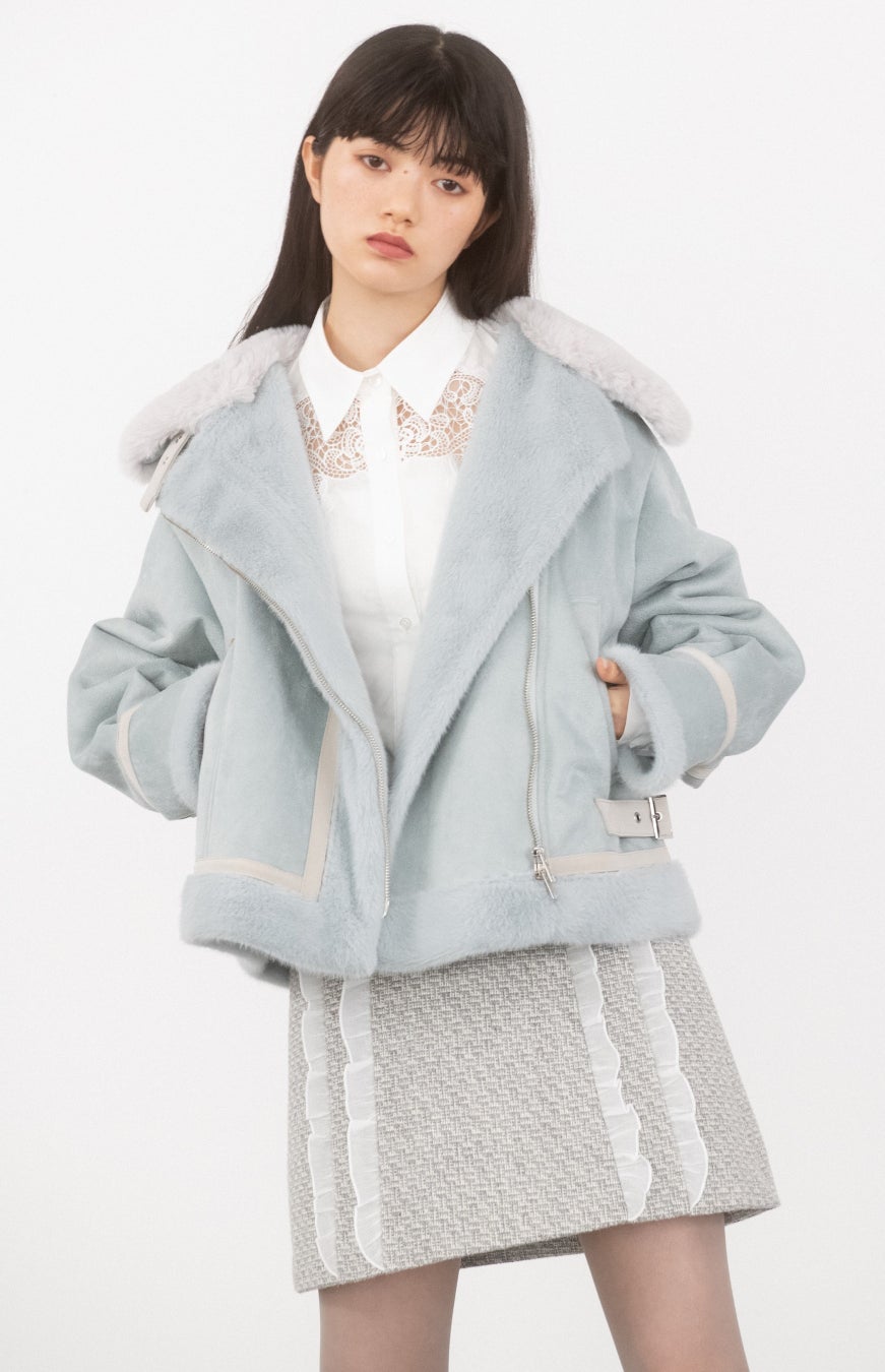 秋冬に纏うアイスブルーのカラーがフェミニンムードを盛り上げます。