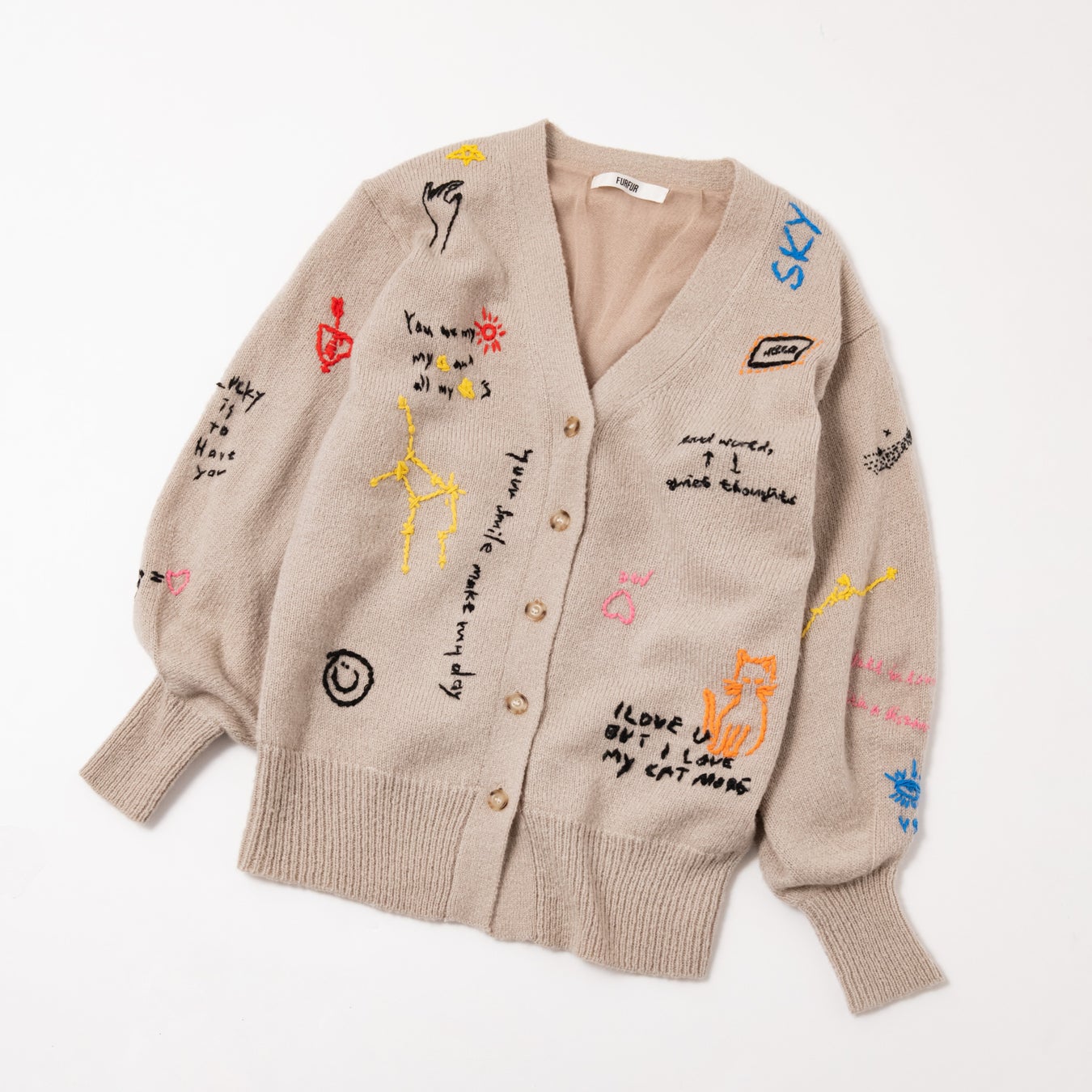 昨年好評だったメッセージ刺繍カーディガンのベージュがリバイバル。