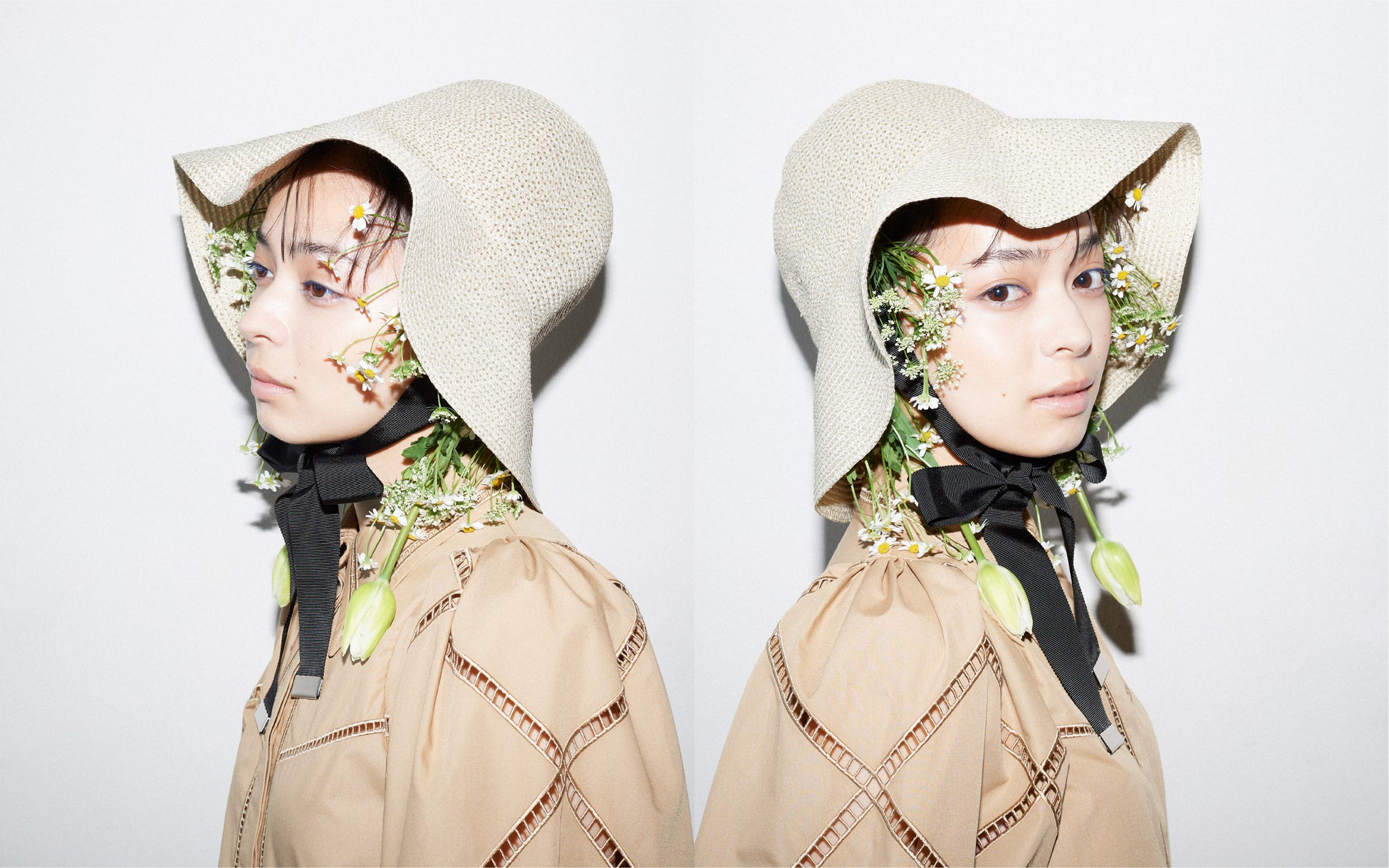 大きな花びらのようなブレードハット被ると、フェミニンさとエレガントさを携えたスタイリングが叶います。
