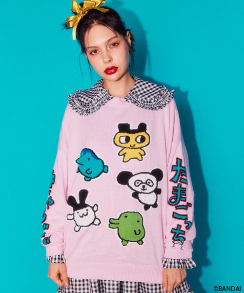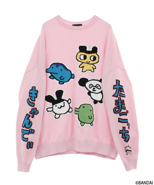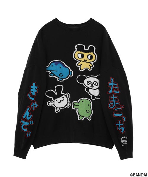 たまごっちの仲間たちとオリジナルキャラクターのPEPE、両袖のロゴをジャカードで表現したニットプルオーバーです。