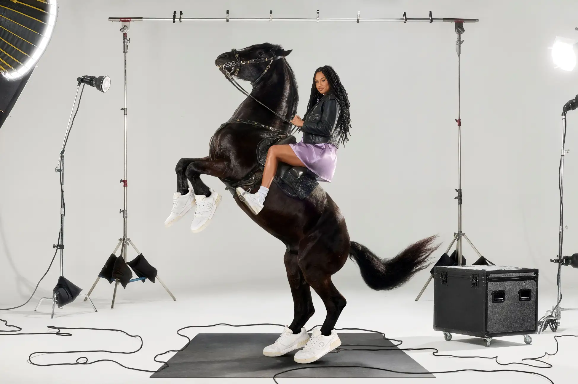 映像作家のコリン・ティリーが監督を務めたこのキャンペーンでは、 "Soho Sneaker(ソーホー スニーカー)" が、異なるシーンにフィットできることを様々な形で紹介します。ショートフィルムでは、ヌナが自分のライブ会場で友人たちのために "Soho Sneaker(ソーホー スニーカー)" をドアストッパーとして使う一方、ペティフォードはバスケットボールのように指の上でスニーカーを回し、ブライディンガーは最新のレースをスマートフォンで見るためにこのスニーカーをスタンドとして使うなど、 "Soho Sneaker(ソーホー スニーカー)" がさまざまな場面に登場します。より一般的な使い方から、遊び心にあふれた型破りな使い方まで、この想像力あふれるシナリオは、 "Soho Sneaker(ソーホー スニーカー)" を自分らしく生きる人に寄り添う理想的な "パートナー" として位置づけています。フォトグラファーのクリス・マッジョも同じコンセプトを捉え、それぞれのシナリオを印象的なビジュアルに凝縮しています。