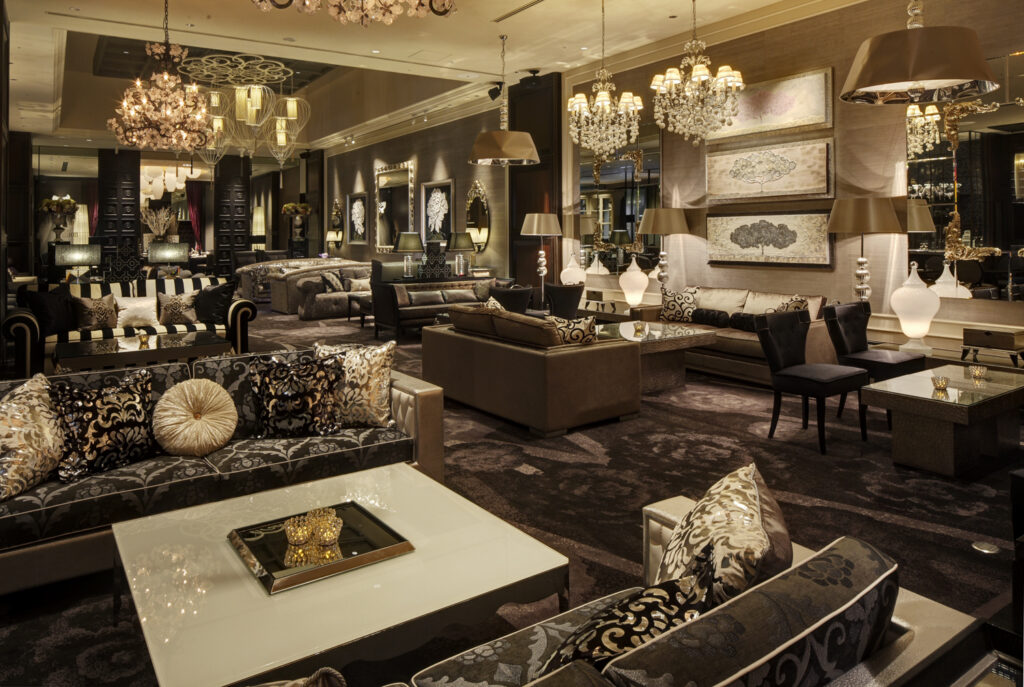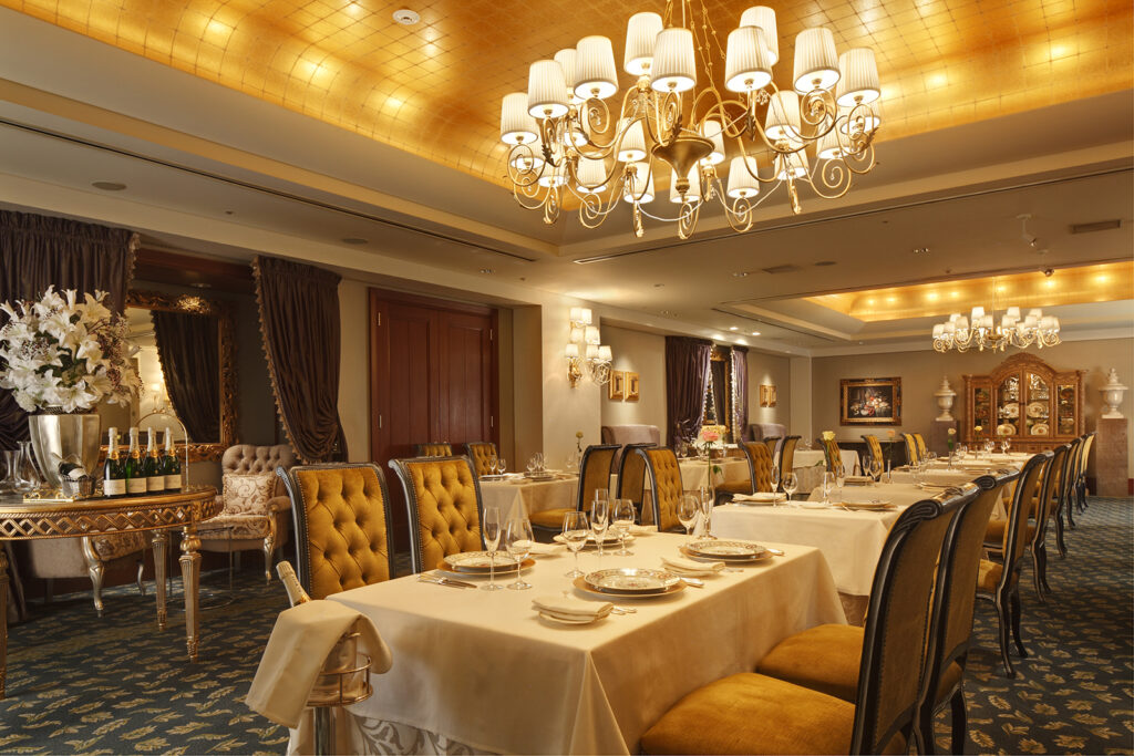 ゆったりとしたソファが配されたラグジュアリーな空間で、優雅なティータイムをお過ごしいただけます。セイボリーは隣接するフレンチレストランよりお届けいたします。
