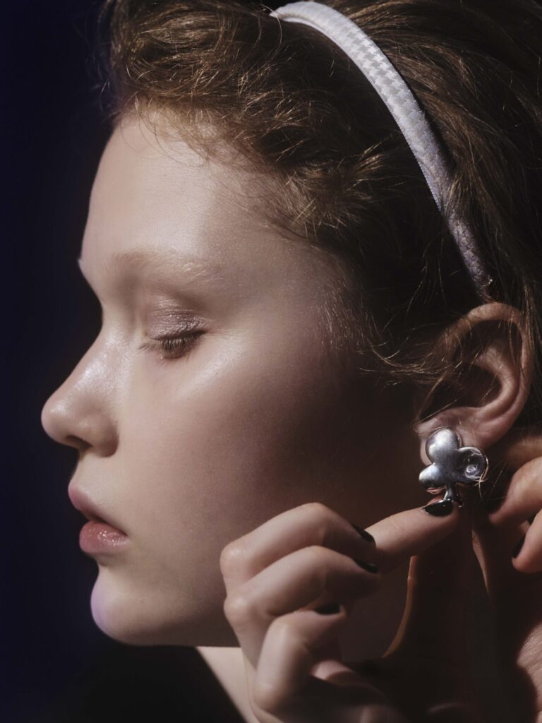 トランプカードのモチーフを彷彿とさせる“クラブ”(=クローバー)をモチーフにしたイヤリング。いびつなフォルムがモード感を演出します。耳にピタッと収まるサイズ感で、馴染みがいいのもポイント。