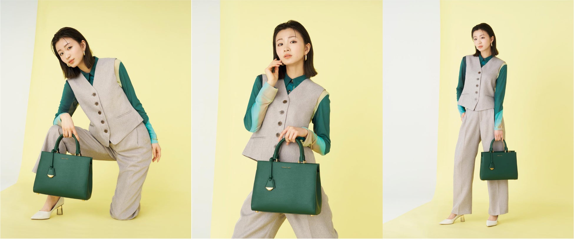 定番のチェルシーブーツをトレンドのデニム素材で仕上げた「Bryn ブライン デニムチェルシーブーツ」は、クラシックな要素とカジュアルな要素を併せ持ち、様々なファッションで楽しめる一足です。バッグは昨年から人気の続く「Koa コア スクエアプッシュロックショルダーバッグ」の新色Brickカラー。ミニマルなスクエアシルエットや、マットな素材がコーディネートにメリハリを与えます。小物を明るいカラーや季節感のある素材に変えるだけで、春らしいコーディネートをいち早く楽しめます。
