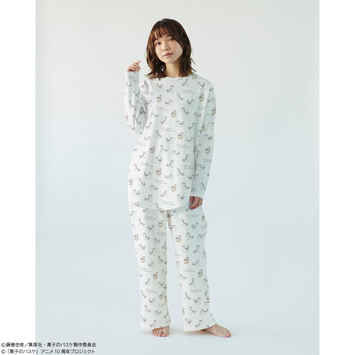 今回のルームウェアは、誠凛高校男子バスケ部で飼われている犬「テツヤ2号」が沢山のポーズをとっている可愛らしい水彩タッチのデザイン。パターンや伸縮性にもこだわり、着心地のよさを追及しました。