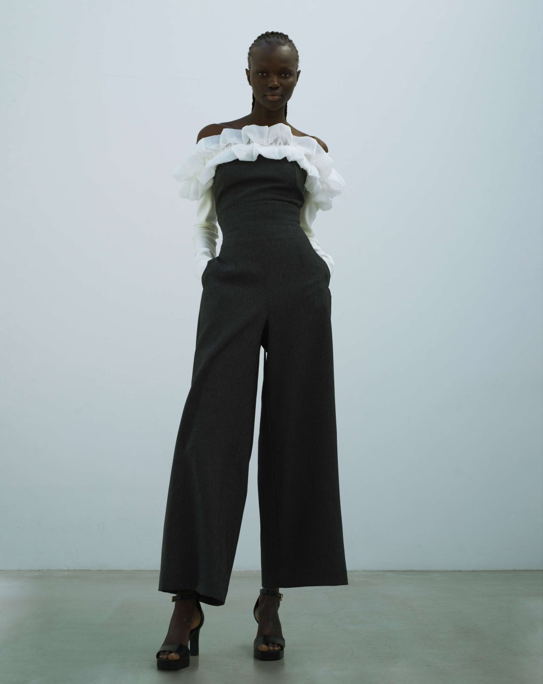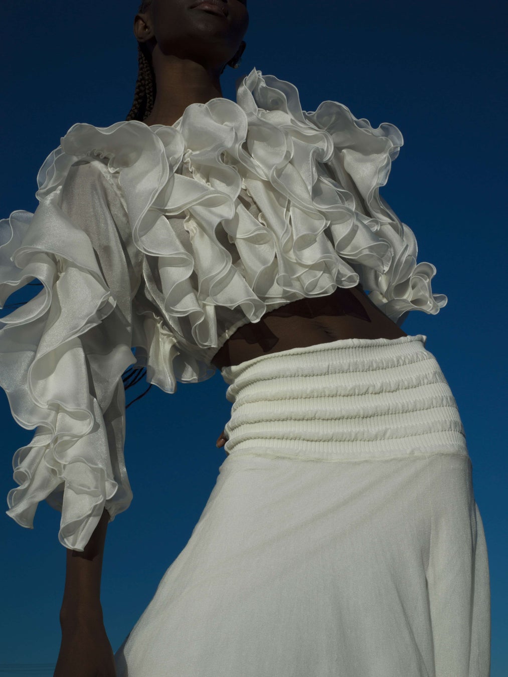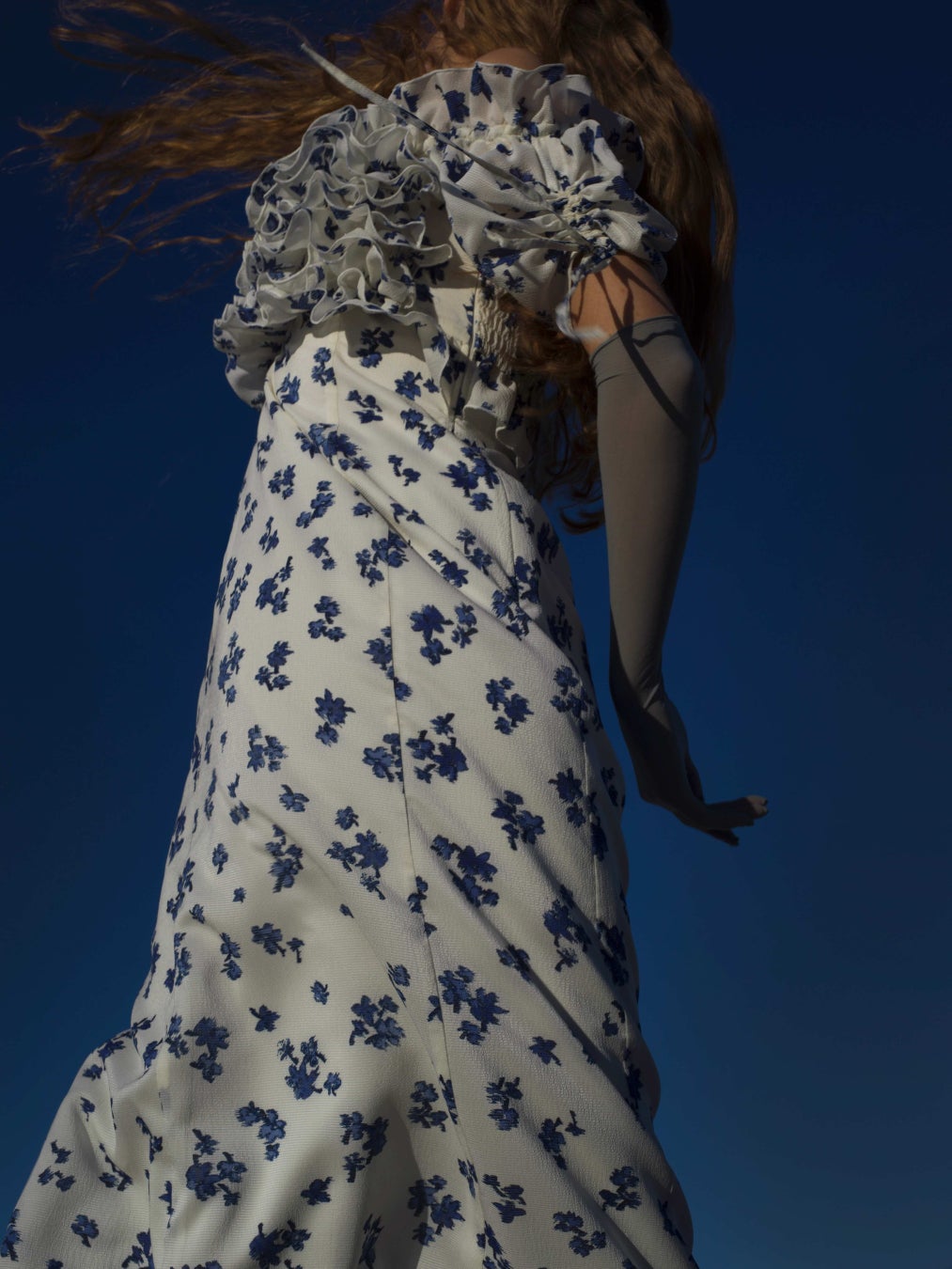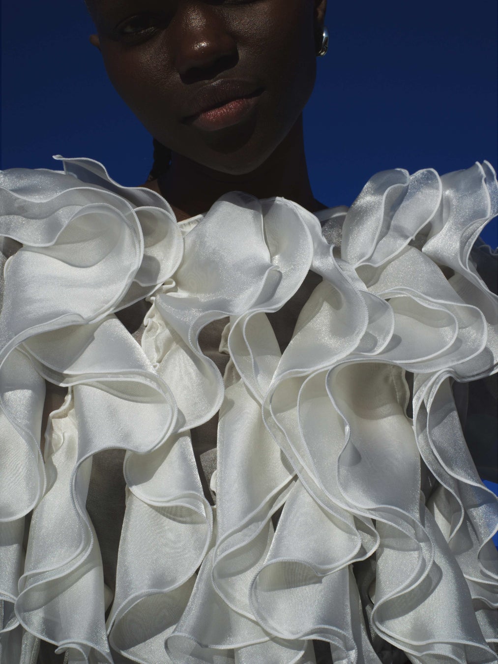 柔らかくガーリーなムードでありながらも大胆なシルエットによって力強さを表現。