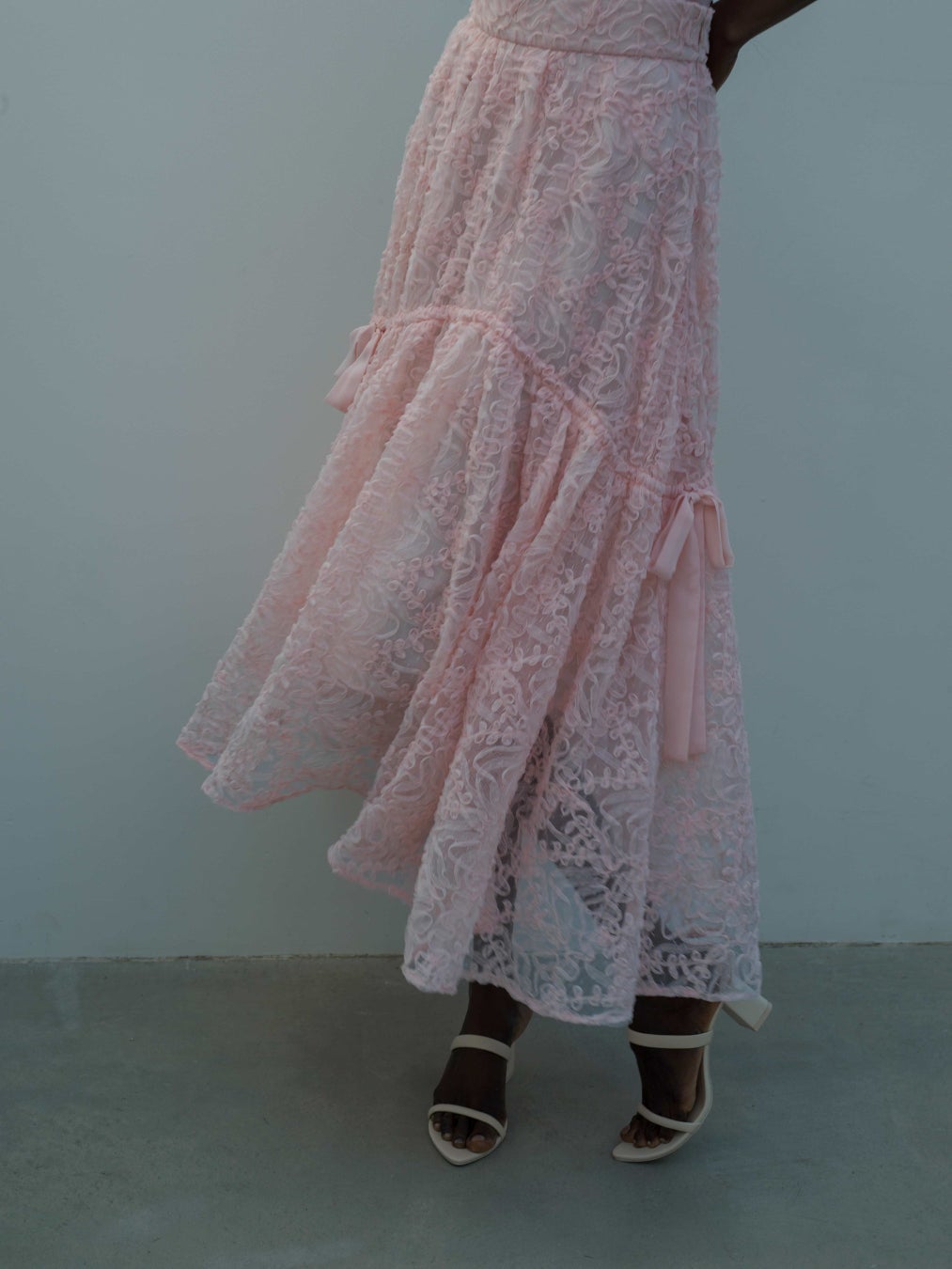 立体的に作られたフリルやシャーリング、リボンモチーフの数々は