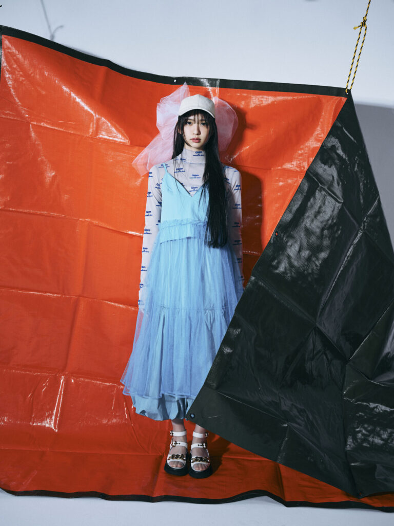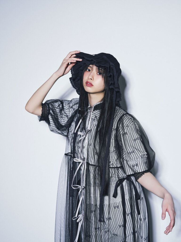 ihmeインタビュー・アーティスト:三品 瑠香「撮影の空気やポージングも普段とは違った雰囲気で楽しかったです。メイクは水色のアイラインがお気に入りで、スタイリングは私の好みど真ん中でときめきました」
